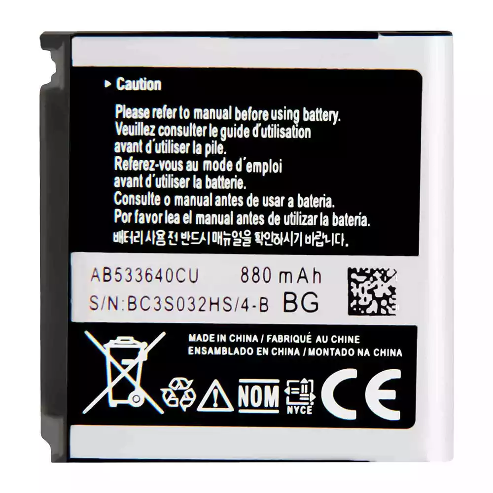 Battery AB533640CU for Samsung S3600/S3600 Metro/C3110/G400/G500/F469/G600/G608/J638/F330/F338/S3600i/AB533640CC/AB533640CK/AB533640CE