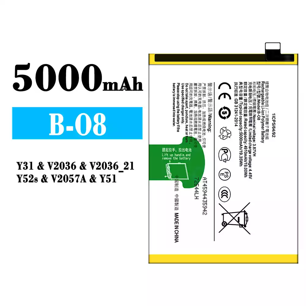 Battery B-O8 for VIVO Y31/Y52s/Y51/V2036/V2036_21/V2057A