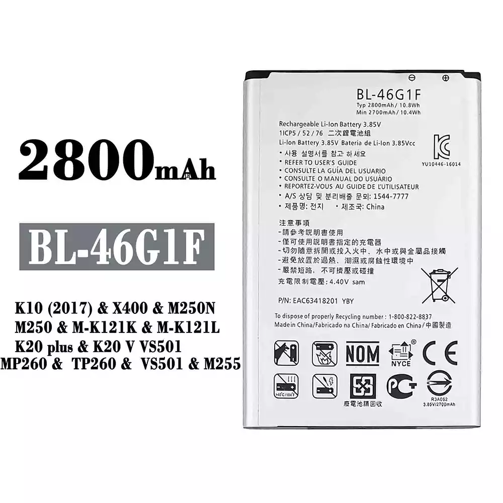 Battery BL-46G1F for LG K10 (2017) / X400 / M250N / M250 / M-K121K / M-K121L / K20 plus / K20 V VS501 / MP260 / TP260 / VS501 / M255