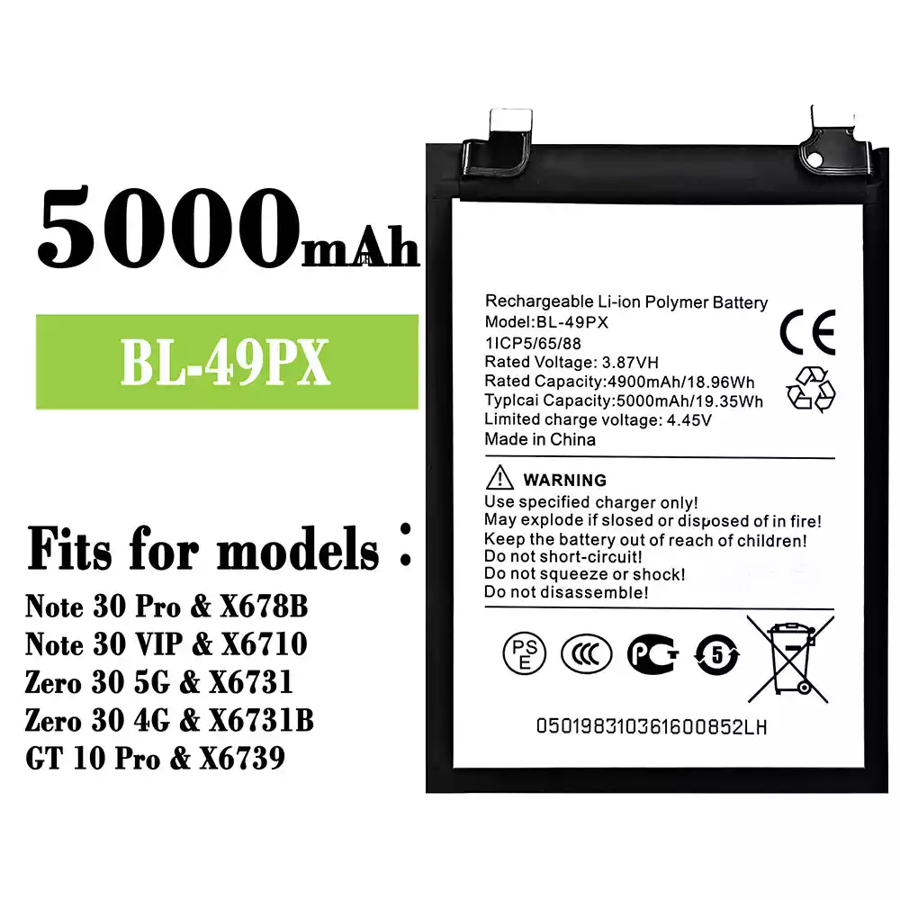 Battery BL-49PX for Infinix Note 30 Pro / X678B / Note 30 VIP / X6710 / Zero 30 5G / X6731 /Zero 30 4G / X6731B / GT 10 Pro / X6739