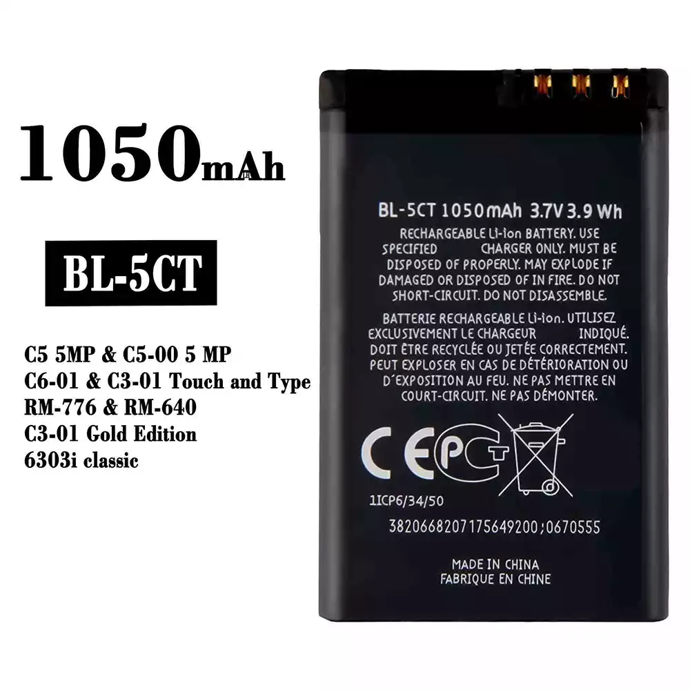 Battery BL-5CT for Nokia C5 5MP / C5-00 5 MP / C6-01 / C3-01 Touch and Type / RM-776 / RM-640 /C3-01 Gold Edition / 6303i classic