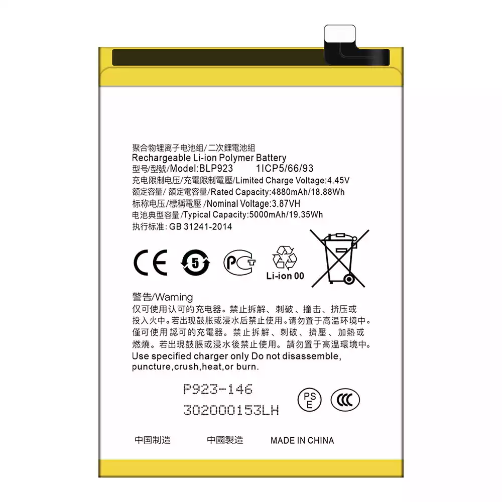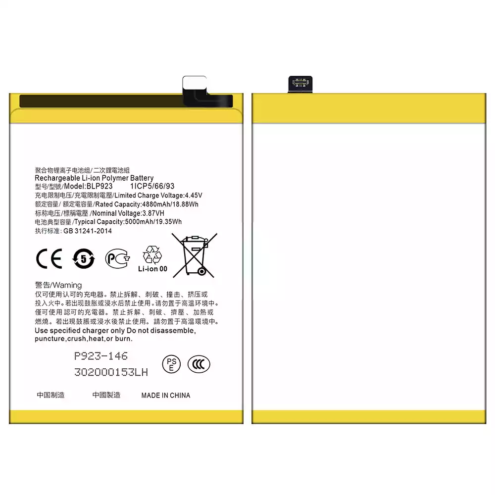 Battery BLP923 for OPPO A57 2020 /A57 4G 2022 /A57 2022 /A77 4G /A77 5G /A77s /A78 5G /A97 5G / K10 5G / OnePlus Nord N20 SE /OnePlus Nord N300 5G /Realme C51