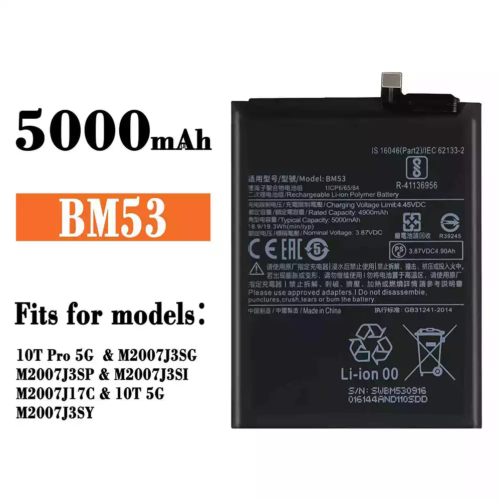 Battery BM53 for Xiaomi 10T Pro 5G / M2007J3SG / M2007J3SP / M2007J3SI / M2007J17C / 10T 5G / M2007J3SY