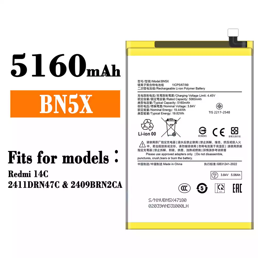 Battery BN5X for Xiaomi Redmi 14C / 2411DRN47C / 2409BRN2CA